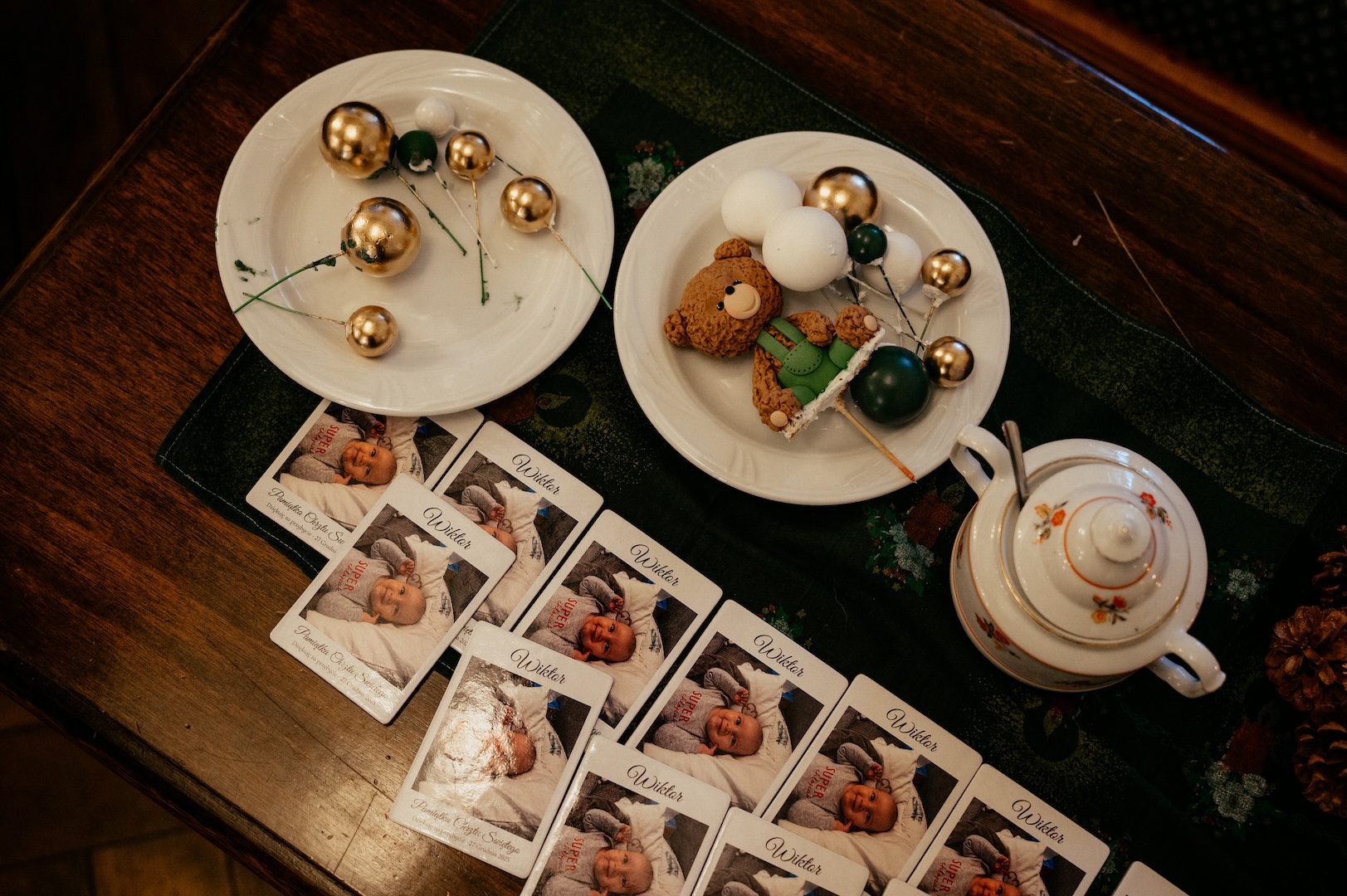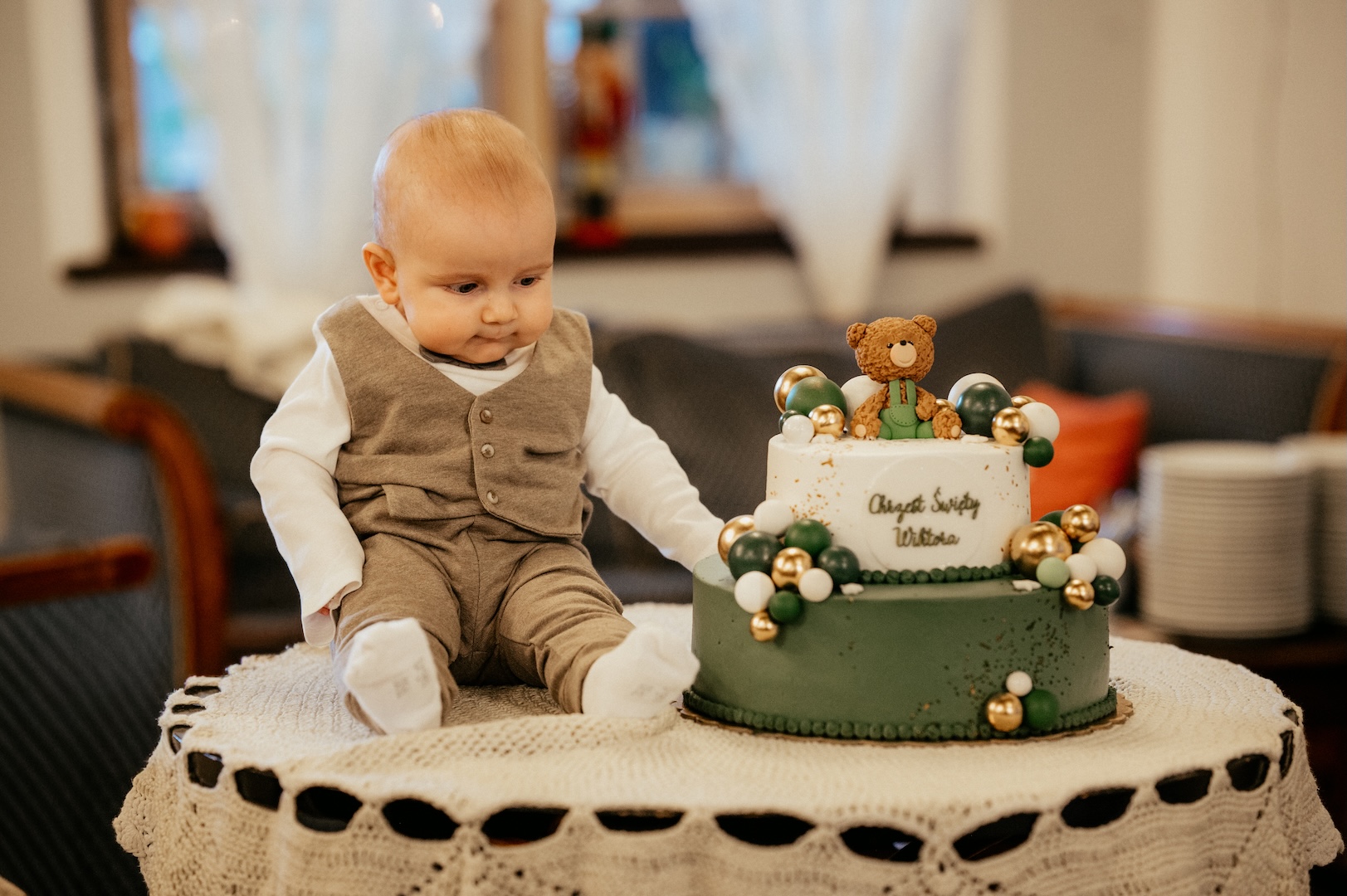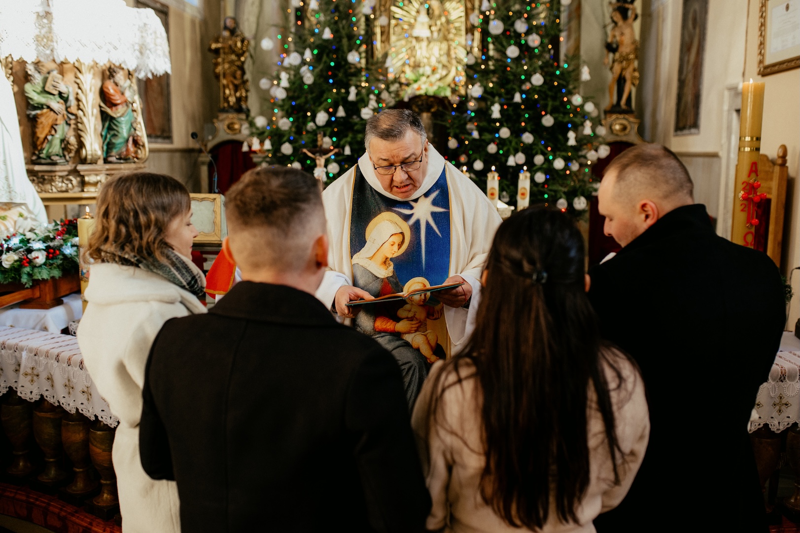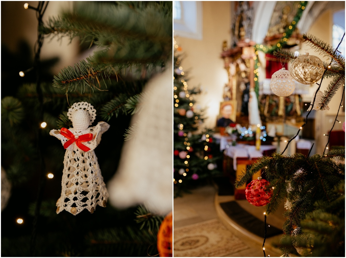 Tym razem powodem do spotkania był Chrzest Święty małego Wiktora. Ponieważ uroczystość odbyła się w okresie Bożego Narodzenia, kościół przywitał nas fantastycznym klimatem – wszędzie stały pięknie przyozdobione choinki i świąteczne dekoracje, co dodało zdjęciom wyjątkowego ciepła. Sam główny bohater, Wiktor, spisał się na medal i z dużą cierpliwością (i spokojem!) zniósł tradycyjne lanie wodą.