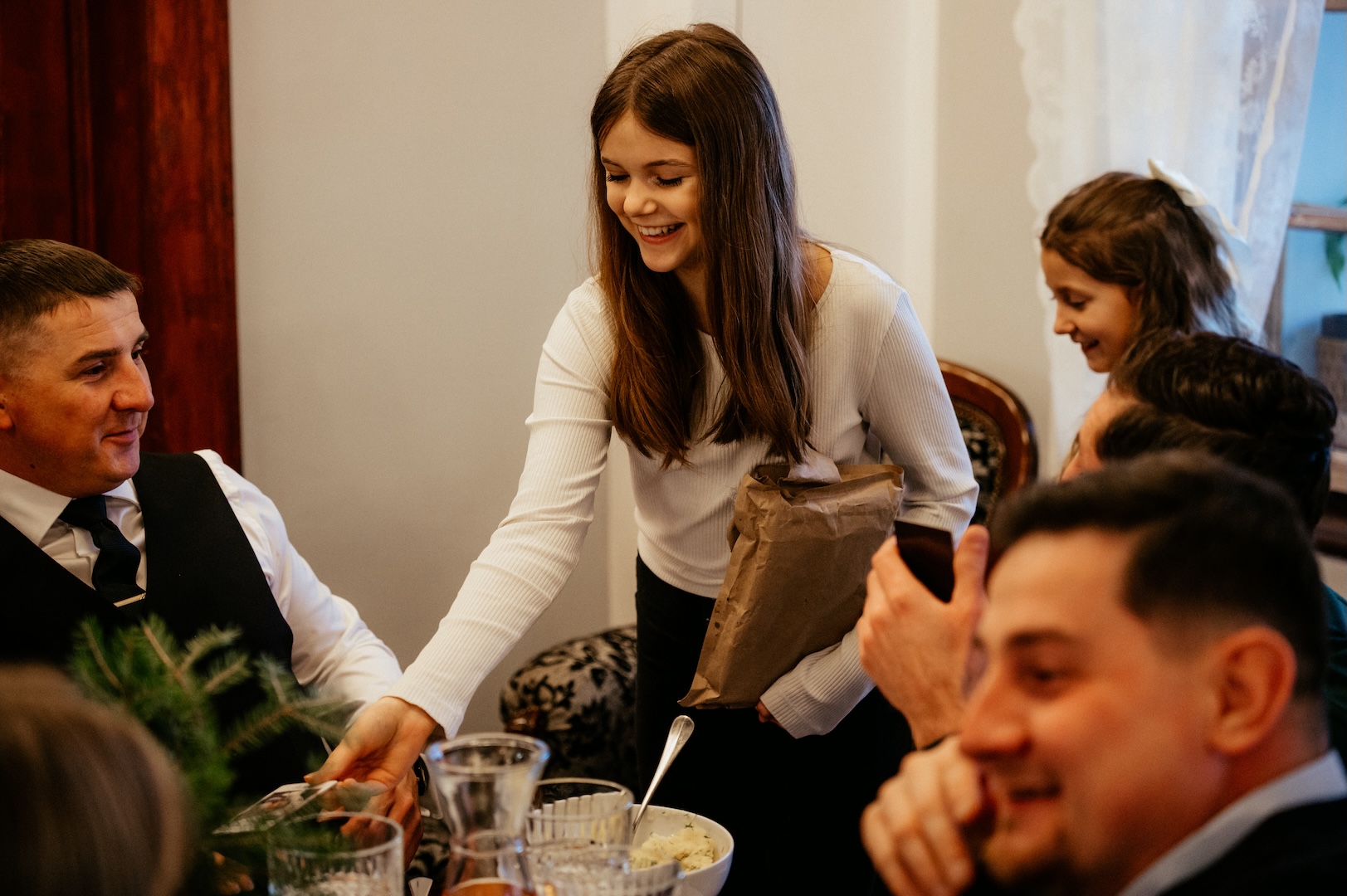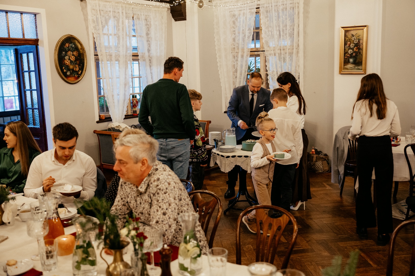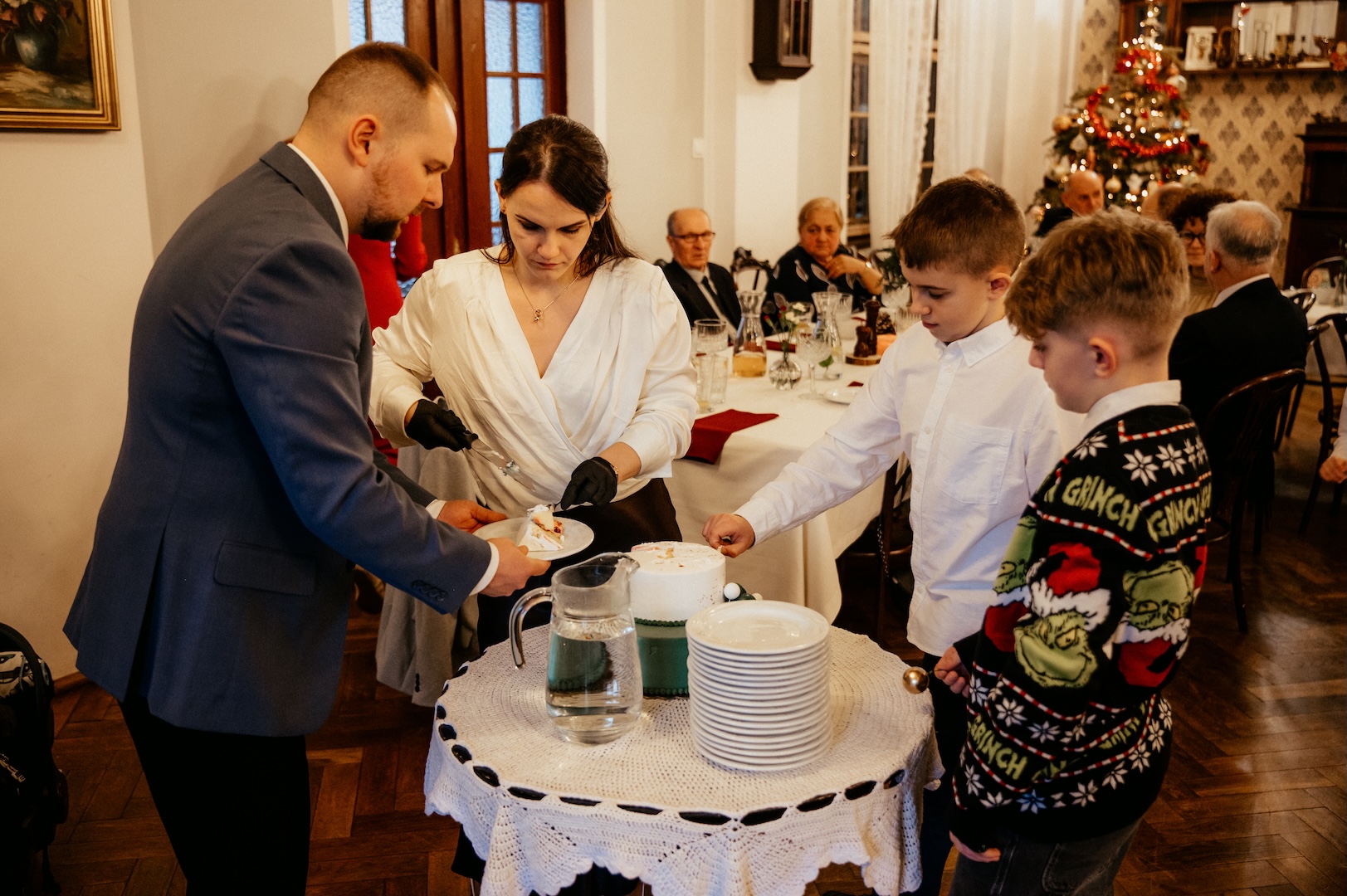 Po ceremonii przenieśliśmy się na przyjęcie do Złotego Jaru. To miejsce o tej porze roku wygląda po prostu magicznie – świąteczny klimat bije tam z każdego kąta i idealnie pasuje do rodzinnego świętowania.