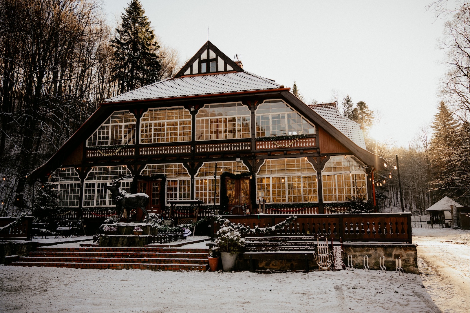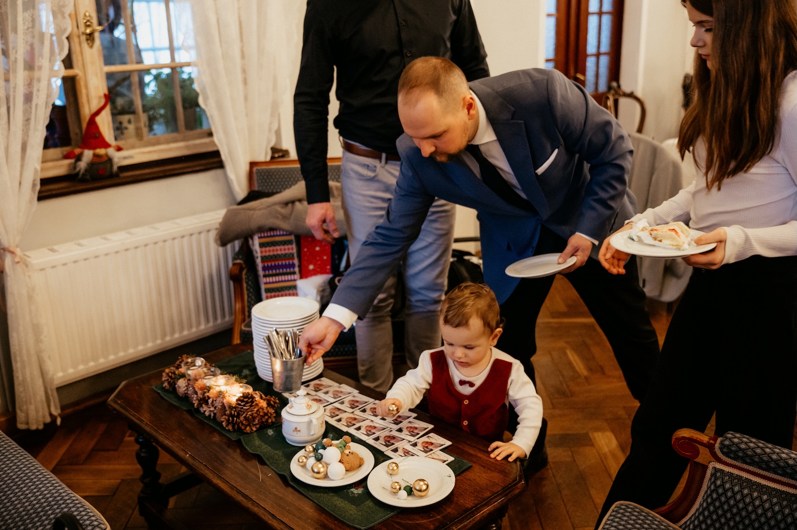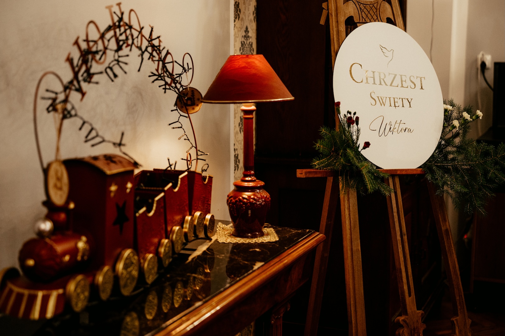 Po ceremonii przenieśliśmy się na przyjęcie do Złotego Jaru. To miejsce o tej porze roku wygląda po prostu magicznie – świąteczny klimat bije tam z każdego kąta i idealnie pasuje do rodzinnego świętowania.