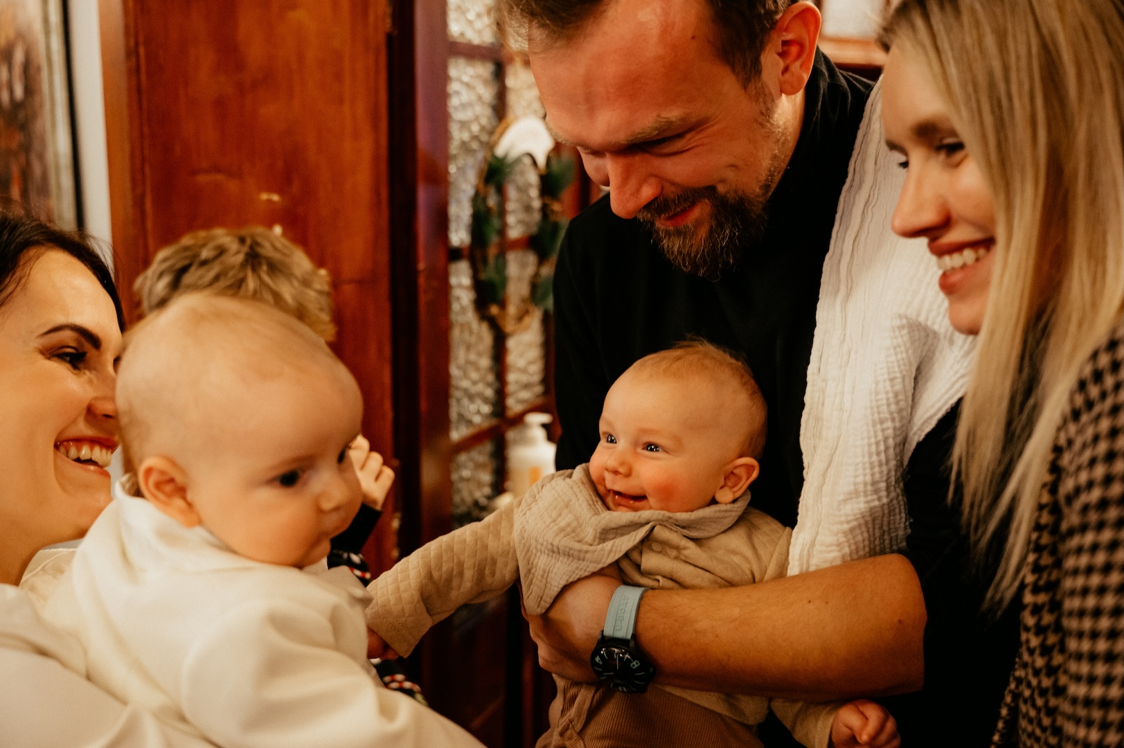 To była kolejna piękna okazja, by spotkać się z rodziną Patrycji i Łukasza. Nasza wspólna fotograficzna droga trwa już dobrych kilka lat – zaczęło się od ich ślubu, potem była sesja brzuszkowa, a w wcześniej dokumentowałem też ważne momenty w życiu rodzeństwa Patrycji. Dzięki temu, że regularnie widujemy się na różnych uroczystościach, czuję się w tym towarzystwie jak wśród starych, dobrych znajomych. I co najważniejsze – dokładnie tak samo jestem przez nich traktowany.