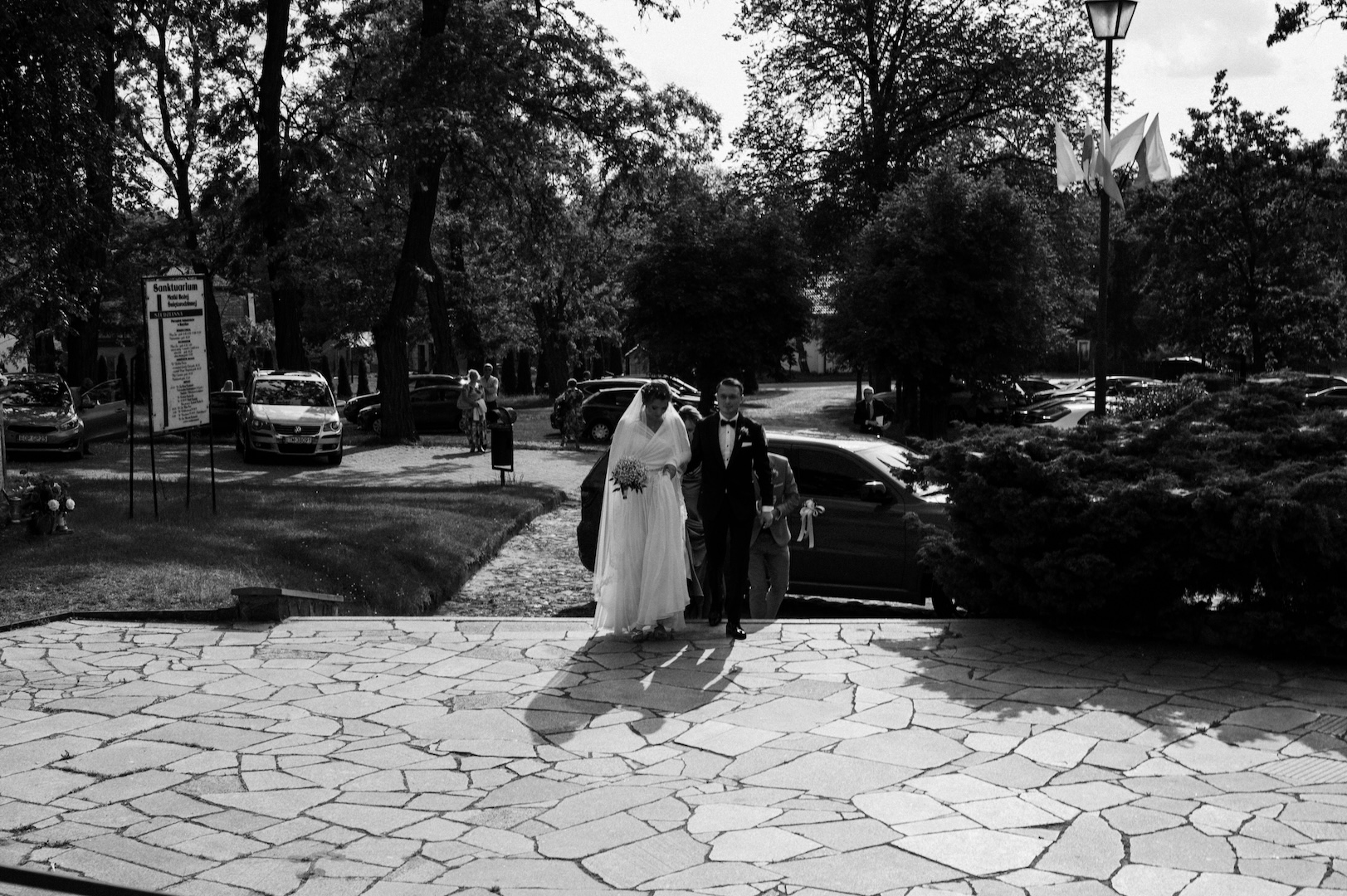 Są takie dni, które od samego rana zapowiadają się wyjątkowo, i dokładnie tak było w przypadku ślubu Oli i Grzegorza niedaleko Łodzi. Choć żar lał się z nieba, a temperatura biła rekordy, nikomu nie odebrało to energii. Tym razem, zgodnie z życzeniem pary, zrezygnowaliśmy z tradycyjnych przygotowań i naszą wspólną przygodę zaczęliśmy od wzruszającego First Looka. To był ten krótki, intymny moment tylko dla nich, po którym od razu ruszyliśmy w stronę Sanktuarium Świętej Rodziny. Muszę przyznać, że kościół zrobił na nas ogromne wrażenie swoją przestrzenią, ale to, co działo się w środku, przerosło wszelkie oczekiwania.